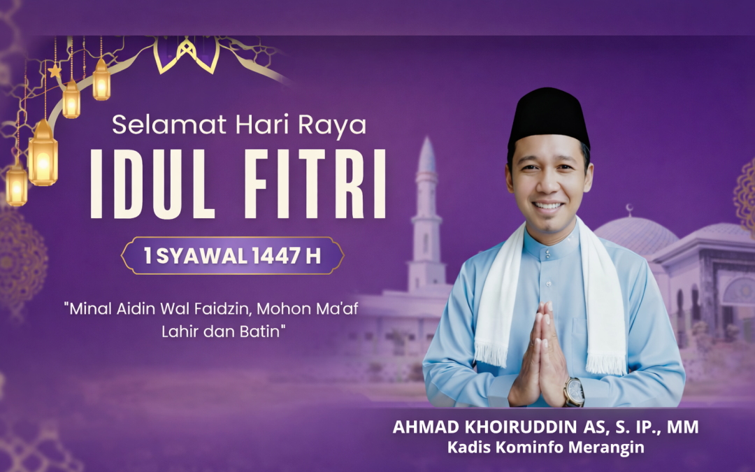 Setelah secara resmi Pemerintah melalui Kementerian Agama Republik Indonesia memutuskan bahwa 1 Syawal 1447 H jatuh pada hari Sabtu 21 Maret 2026, Kepala Dinas Komunikasi dan Informatika (Kominfo) Kabupaten Merangin, Ahmad Khoiruddin AS yang akrab disapa Akhoi, atas nama pribadi, keluarga, serta seluruh jajaran Dinas Kominfo Kabupaten Merangin, menyampaikan ucapan Selamat Hari Raya Idul Fitri 1447 H kepada seluruh kaum muslimin dan muslimat di wilayah Kabupaten Merangin maupun seantero nusantara.